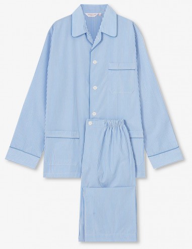Le pyjama a une veste avec trois poches, un col classique et une ceinture ajustable avec deux boutons. C'est le pyjama parfait pour toute l'année avec avec une rayure bleue et blanche classique. Offrez-vous le luxe et le confort du pyjama classique pour hommes de Derek Rose. Vous ne le regretterez pas !