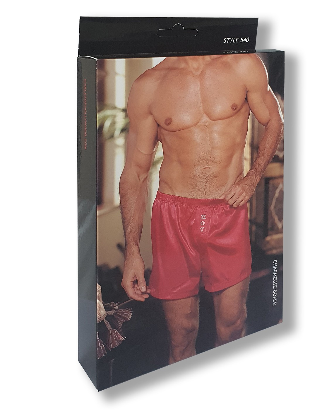 Boxers exclusifs et spéciaux en satin avec des strass formant le mot "HOT" sur le devant du boxer. Parfait comme cadeau pour votre partenaire ou pour vous faire plaisir ! Boxers avec une coupe confortable et décontractée, avec une mouche et une fermeture à bouton. Un boxer en satin avec de beaux reflets sexy, un vêtement unique pour des occasions spéciales !